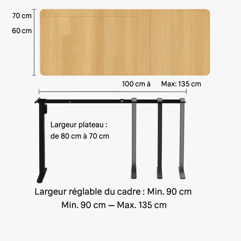 Plateaux compatibles : 100–160 cm (L) × 60–70 cm (P)